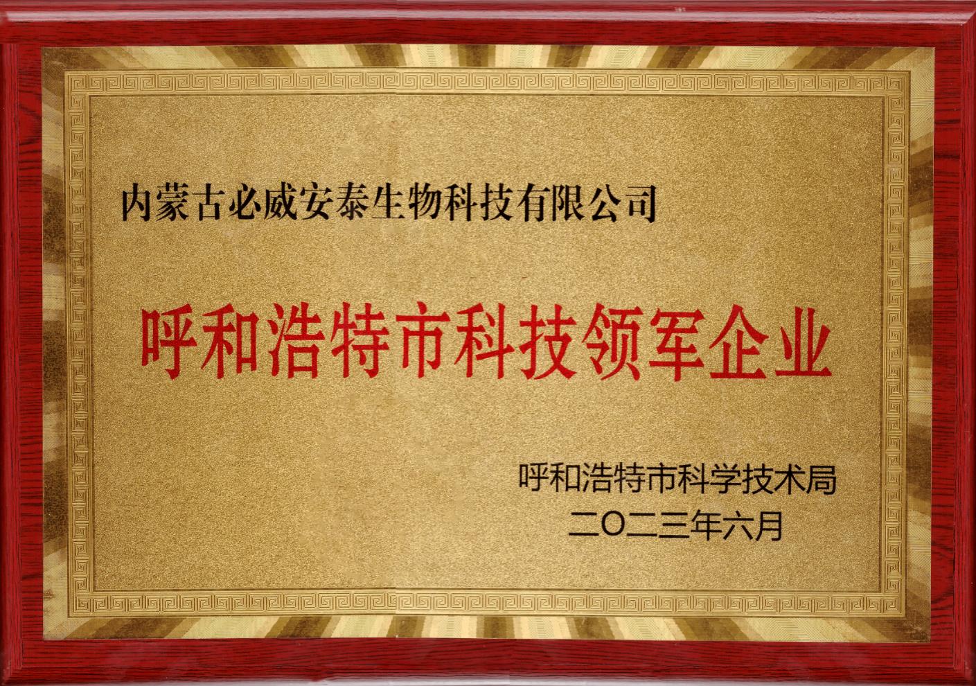喜訊:熱烈祝賀我司榮獲“呼和浩特市科技領軍企業(yè)”榮譽稱號