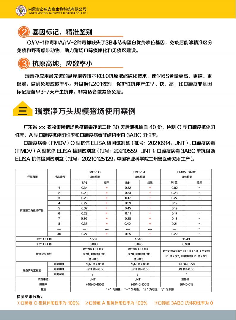 口蹄疫O型、A型二價3B蛋白表位缺失滅活疫苗(O/rV-1株+A/rV-2株)